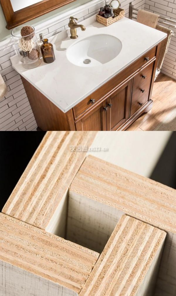 材料不必追求大牌或高端款式,选择性价比高的产品。例如浴室柜的材料就建议各位业主选择多层实木柜而非实木柜,多层实木柜是由天然原木切成木板后,通过胶贴热压等工艺制作而成,它既保留了实木的高端品质,又克服了实木易开裂和防潮性差的缺点,价格相对于实木柜更为实惠。